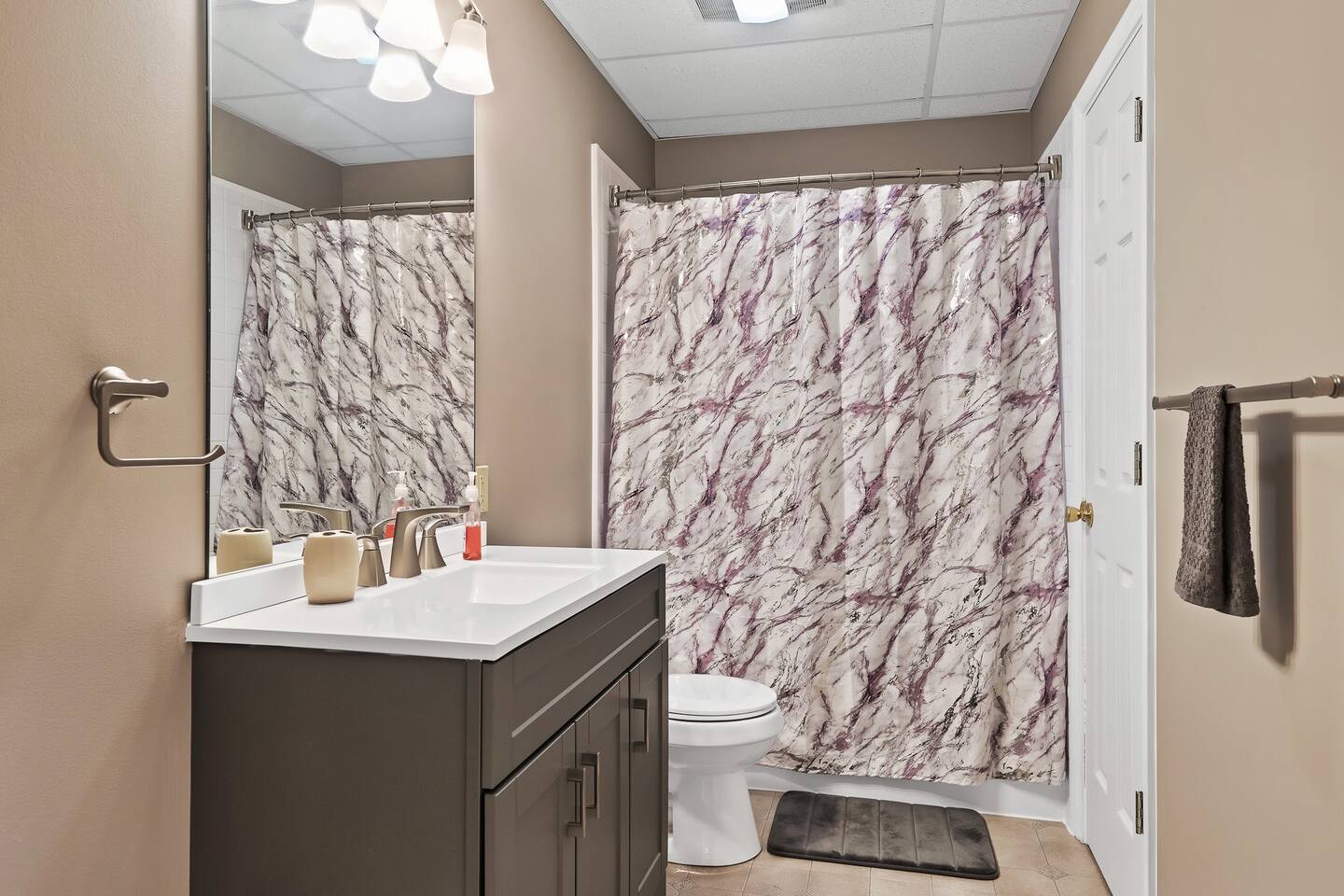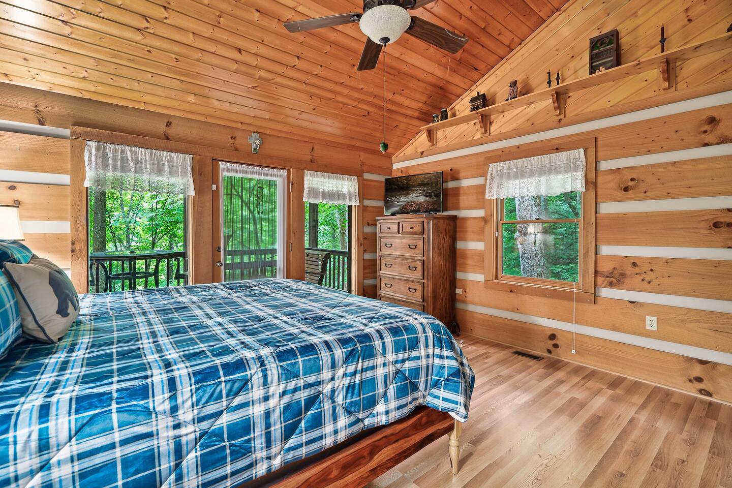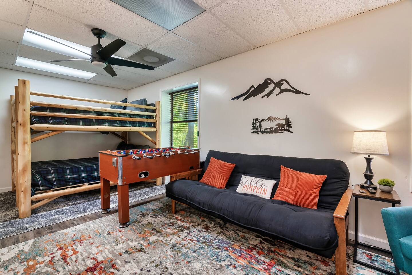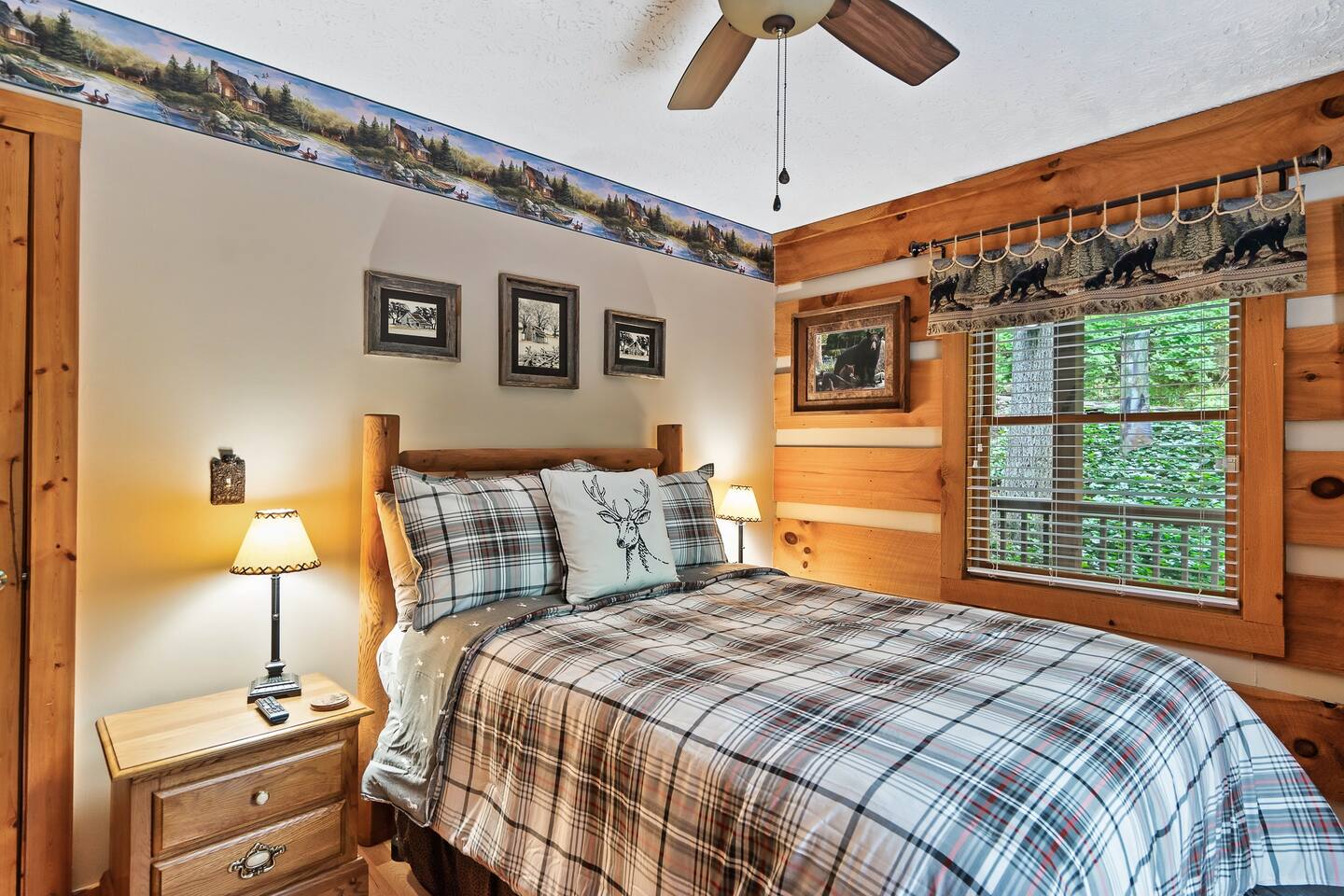 Our 3 bedroom, 3 full bath cabin with a gas fireplace, hot tub and fire pit, captures the essence of the smoky mountains. You enter by turning right at the top of the short stair case from the driveway. This will take you to the street side of the property and the main front door. Upon entering you will be in the laundry room, with washer, dryer, ironing board, etc. You will find an umbrella for your use should you need it. Straight ahead is the first full bathroom. As you exit the laundry room you will enter the full kitchen with granite counter tops and all the essential utensils and then some! There is a keurig as well as standard drip coffee pots. Plenty of space to move around and cook in the kitchen as well as a breakfast bar with seating for 4. The kitchen table seats 6 and there are two folding chairs in the laundry room for larger families. Turn right from the kitchen and you will be in the master suite with attached full bath. This room has a large king sized bed (seriously, it's huge!). The closet has a pack n play for kids. This room has a door out to the deck for easy access to the hot tub. When you exit the room back into the cabin, you will be in the large family room with huge smart TV, pull out couch, and large stone floor to ceiling fireplace with gas logs. The pull out is a queen and the sheets are in the dresser of the guest room that is our next stop. This room is right off the family room and has a queen sized bed, smart TV and closet. Through the family room you will find a door leading out to the back deck and the hot tub. Towels are right inside that door for your use. The spiral staircase down takes you to a 3rd bedroom/game room with multiple arcade games, an electric fireplace, foosball table and large smart TV. Here you will find a queen over queen bunk bed and futon to sleep up to 5 additional guests. This floor also has a full bath. There is a door leading back out to the carport and if you make a right from there you will find a serene fire pit and ample seating for the family. We know you will love this cabin as much as we do. It is in the perfect location on the quiet side of the smoky mountains, yet convenient to everywhere. Thank you for considering our place for your next adventure!